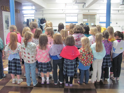We discussed humility and modesty in our dress, making modesty shrugs from a bandanna or scarf. They turned out very cute and some of the Buds even continued to wear them to school during the week!